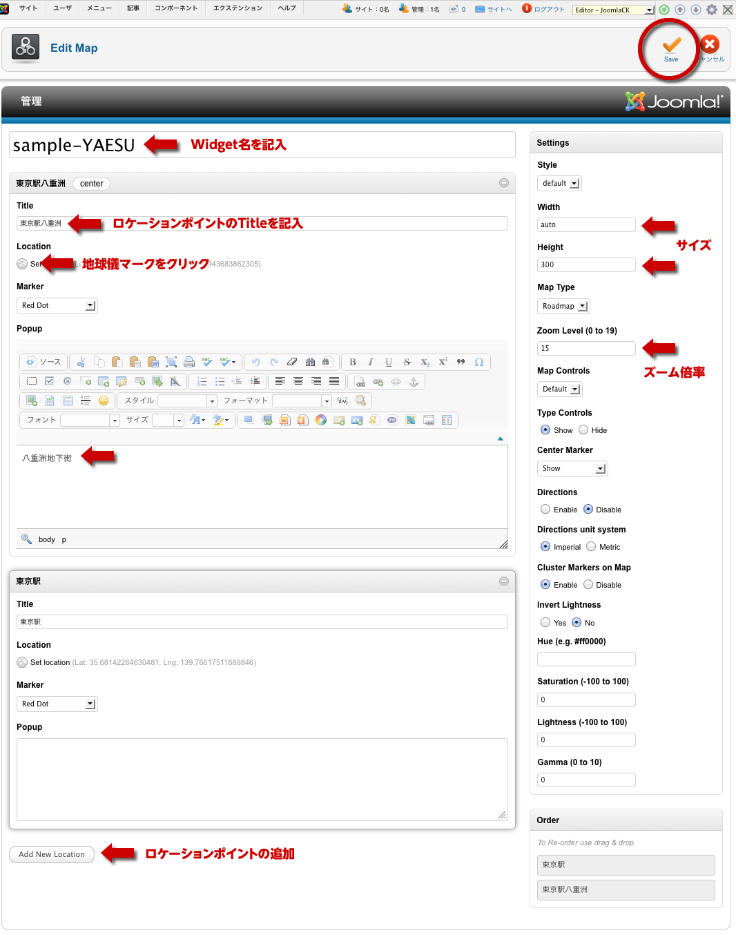 ■必要な設定を行ったら必ず右上の「Save」ボタンを押してください。
