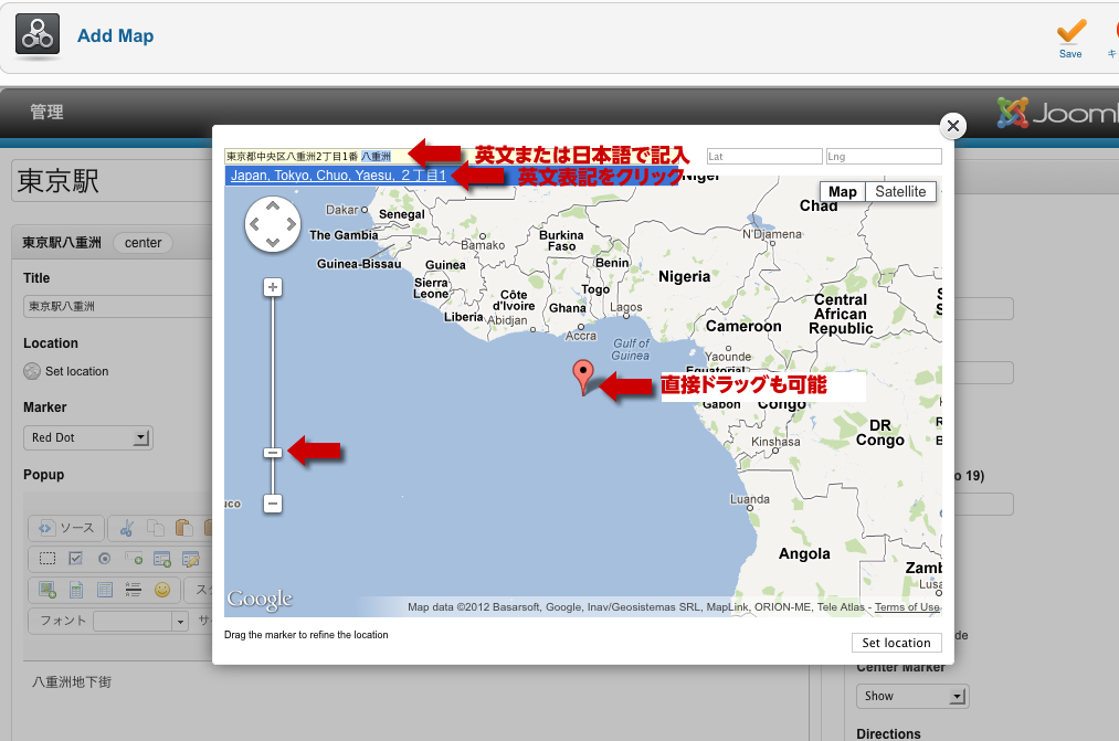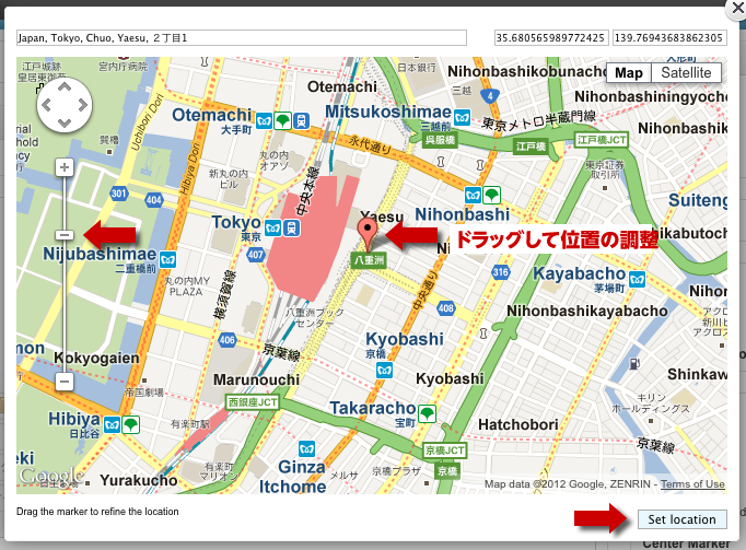 拡大してロケーションポイントをドラックして微調整