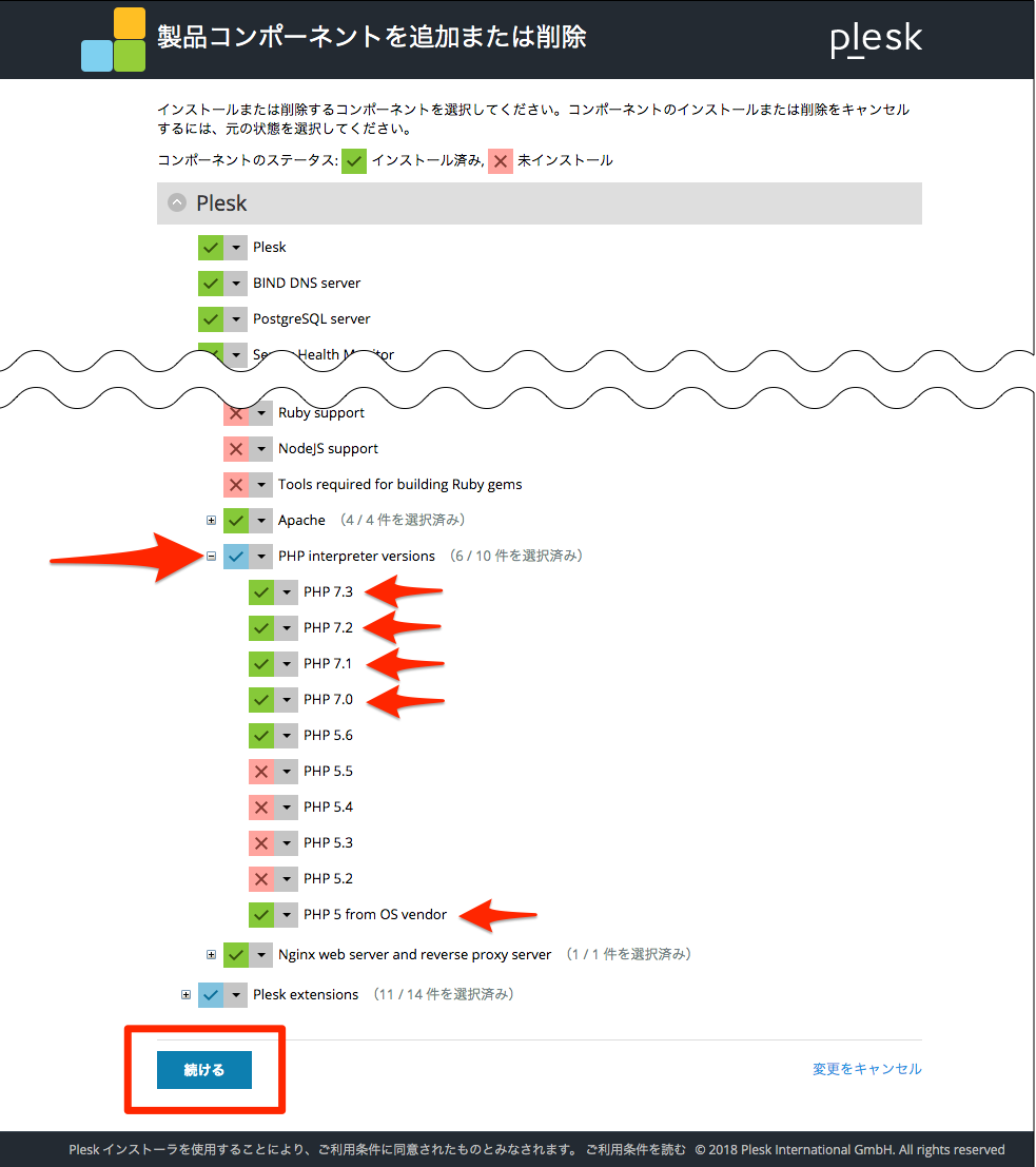 必要なPHPバージョンにチェックを入れて(from OS venderは必ず必要です削除しないよう注意してください)