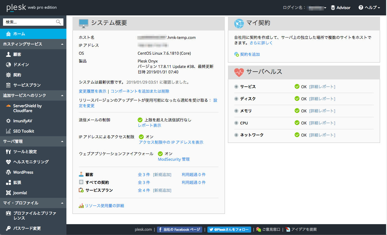 GMOのVPSサーバで提供しているPleskは初心者でも簡単にサーバ構築が出来ます。バージョンもPlesk Onyx(17.x)となり便利でより強力になりました。Pleskを利用することで、サーバー構築・運用・開発環境やセキュリティ管理まで、全てコマンドなしのGUI操作で直感的に操作を簡単に行うことができます。4GBタイプがおすすめプランとなっていますが、私は2GBタイプを利用させてもらっています。CMS中心での利用なので2GBタイプでも現在ストレス無く利用できています。お試しも兼ねて最初は1GBタイプを契約しましたが、作動が遅くPleskが不安定でしたので半年余りで2GBタイプに切り替えました。